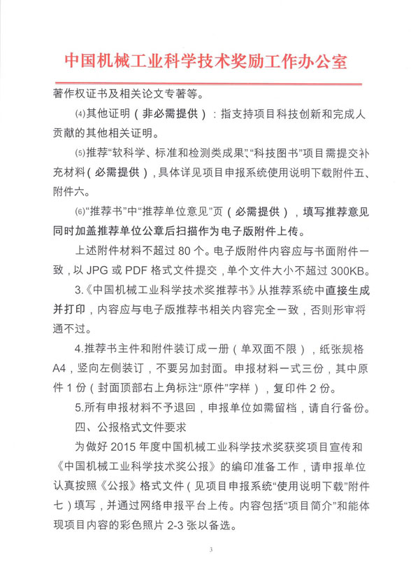 關(guān)于2015年度“中國機械工業(yè)科學(xué)技術(shù)獎”申報、推薦工作的通知
