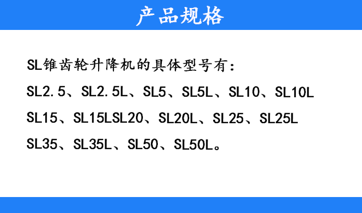 SL2.5、SL2.5L、SL5、SL5L、SL10、SL10L、SL15、SL15L、SL20、SL20L、SL25、SL25L、SL35、SL35L、SL50、SL50L