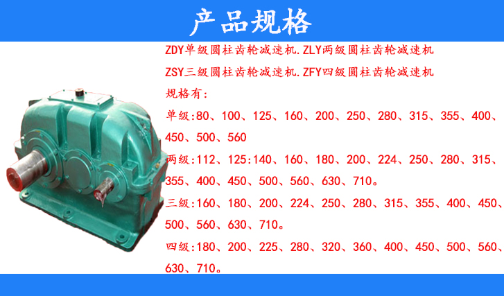 1、ZDY單級(jí)圓柱齒輪減速機(jī),ZLY兩級(jí)圓柱齒輪減速機(jī),ZSY三級(jí)圓柱齒輪減速機(jī)ZFY四級(jí)圓柱齒輪減速機(jī)。