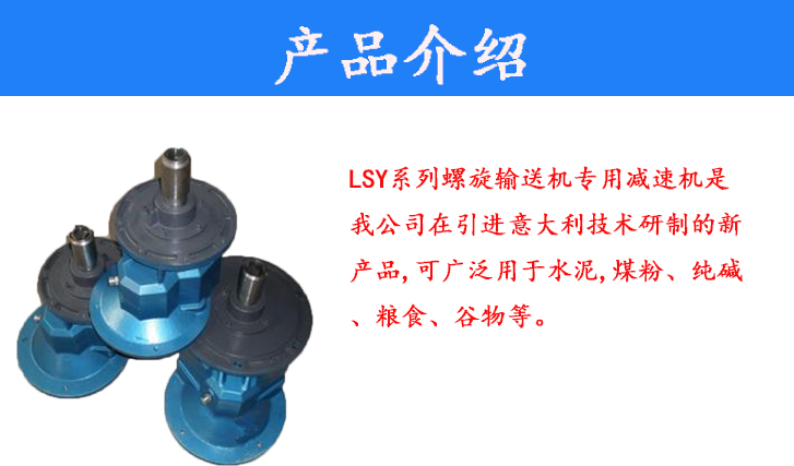LSY系列螺旋輸送機專用減速機是我公司在引進意大利技術研制的新產(chǎn)品,可廣泛用于水泥,煤粉、純堿、糧食、谷物等。