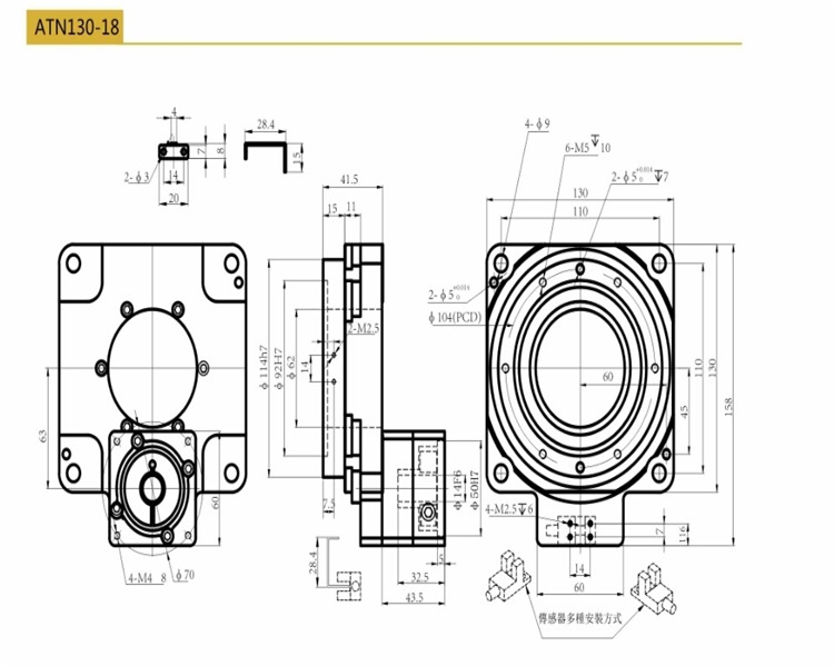 中空旋轉(zhuǎn)平臺(tái)通過電機(jī)驅(qū)動(dòng),實(shí)現(xiàn)角度調(diào)整自動(dòng)化。精加工蝸輪蝸桿或齒輪傳動(dòng),角度調(diào)整無極限。精密軸系設(shè)計(jì),保證精密高,承載大;步進(jìn)電機(jī)與傳動(dòng)件通過進(jìn)口高品質(zhì)彈性聯(lián)軸器連接,排除空間和加工形位誤差。旋轉(zhuǎn)臺(tái)面外圈刻度直觀;標(biāo)準(zhǔn)接口,方便信號(hào)傳輸;手動(dòng)手輪配置,電控手動(dòng)均可?蛇x裝伺服電機(jī)或步進(jìn)電機(jī)。