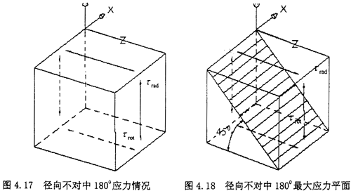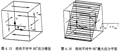 由圖示可知,此時單元體的受力其實是屬于純剪切狀態(tài),只是此時的剪切應力為τrad與τrot的疊加。此時剪應力τrad與τrot的方向相反。所在最大應力有所抵消。