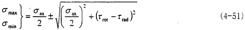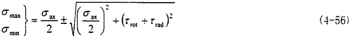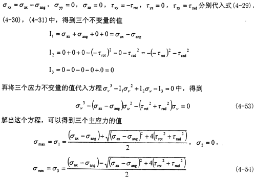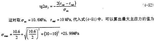 這時取σax=10.6MPa,τrad=10MPa,代入式(4-56)中,可以得出最大主應(yīng)力值為