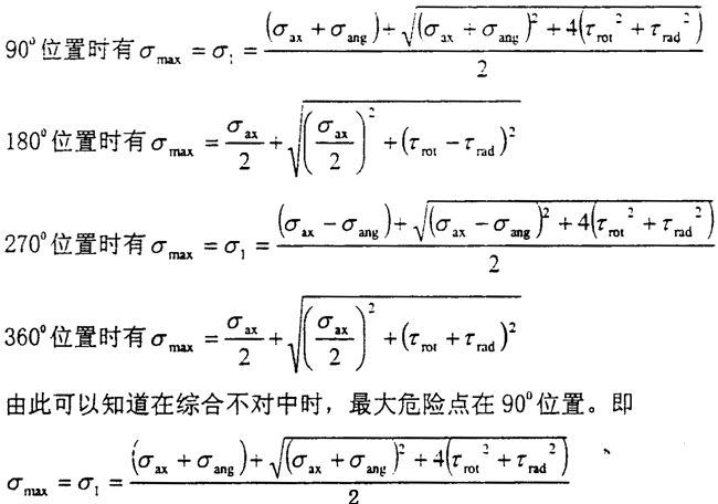 此時的受力仍然屬于兩向應(yīng)力狀態(tài),因為徑向不對中產(chǎn)生的剪應(yīng)力方向和扭轉(zhuǎn)產(chǎn)生的剪應(yīng)力的方向在同一平面上而且相互平行。根據(jù)計算可以知道