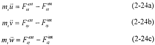 其中i代表節(jié)點(diǎn)號(hào),mi為節(jié)點(diǎn)質(zhì)量,,為平動(dòng)加速度,為外力,為變形引起的內(nèi)力(其中j=1,2,3,分別表示三個(gè)坐標(biāo)軸方向x,y,z)。