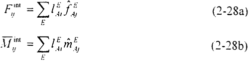 利用疊加原理,將每一個(gè)單元內(nèi)的節(jié)點(diǎn)上的內(nèi)力和內(nèi)彎矩分別求和,可得到節(jié)點(diǎn)上的相應(yīng)分量: