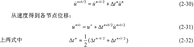 對(duì)于每一時(shí)間步長(zhǎng),由運(yùn)動(dòng)方程首先解出各節(jié)點(diǎn)的平動(dòng)加速度,然后根據(jù)顯式中心差分公式解出各節(jié)點(diǎn)速度: