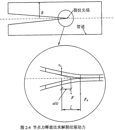 早期對(duì)流體壓力管道裂紋擴(kuò)展問(wèn)題的分析中曾應(yīng)用應(yīng)變能變分原理,將裂紋動(dòng)力等效為裂紋前面環(huán)向應(yīng)變能的釋放率,Iewin-Conten發(fā)展了裂紋驅(qū)動(dòng)力的解析計(jì)算: