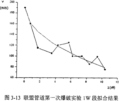 對(duì)于圖3-9中的lW段,取v0=200m/s,Lr=35m,擬合結(jié)果如圖3-13所示: