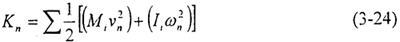 式中i為節(jié)點(diǎn)號(hào),M是集中于節(jié)點(diǎn)處的質(zhì)量,I是集中于節(jié)點(diǎn)處的轉(zhuǎn)動(dòng)慣量,vn是節(jié)點(diǎn)的線速度分量,ωn是節(jié)點(diǎn)的角速度分量。