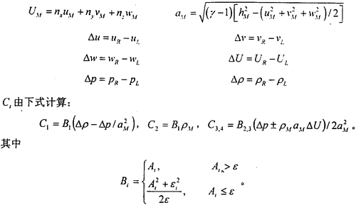 計(jì)算無粘通量的時(shí)候,采用Roe矢通量差分分裂,有
