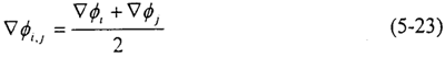 粘性通量由控制面上的速度、壓力及密度的梯度項(xiàng)組成,所以粘性通量的計(jì)算主要是求出控制面上相關(guān)物理量的梯度值。首先由(5-19)式求出各單元內(nèi)物理量ф的梯度值后,界面(i,j)上物理量的梯度值可簡(jiǎn)單地由相鄰單元內(nèi)物理量ф的梯度值的算術(shù)平均得出: