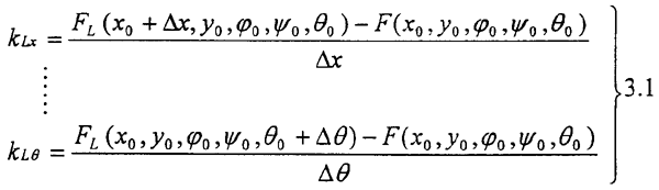 其意義為:內(nèi)外齒在平衡位置(x0,y0,000)外,由于L方向的微小位移,在H方向上增加的力。L=H為主剛度,L≠H為叉剛度。
