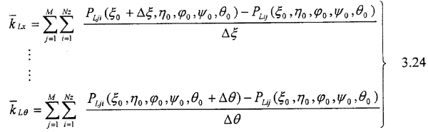 0,ψ0,θ0)。如果沒(méi)有達(dá)到精度則修改θ0值重復(fù)以上計(jì)算。得到靜平衡位置后再利用式3.24求得25個(gè)剛度系數(shù)。