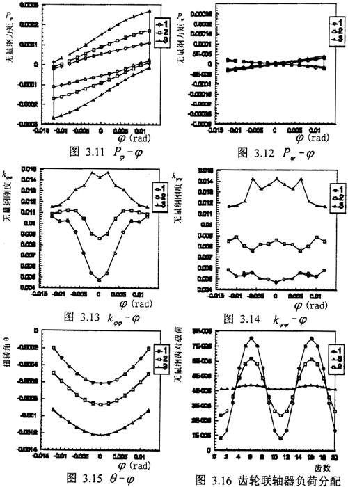 的增加,使得齒對彈簧到齒輪中心的力臂增加,使Kφφ有增加的趨勢,兩方面作用的結(jié)果使得