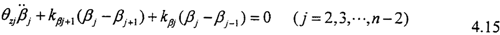當(dāng)忽略軸承對轉(zhuǎn)子扭轉(zhuǎn)振動(dòng)的阻尼影響時(shí),則第j個(gè)質(zhì)點(diǎn)的扭矩自由振動(dòng)方程為: