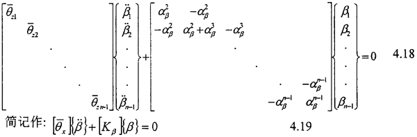 綜合式(4.20)和式(4.21),得到轉(zhuǎn)子系統(tǒng)扭轉(zhuǎn)自由振動(dòng)方程