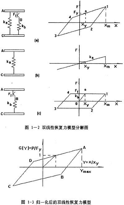 在對遲滯系統(tǒng)的研究中,用雙線性模型可以近似描述遲滯回線,雙線性模型如圖1-2(a)所示,雙線性恢復(fù)力模型可以由兩個線性剛度Ka和Kb以及臨界滑移力Fy來描述。