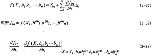 2是關于自變量X=[x1,x2,…,xp]T和待定參數(shù)B=[b1,b2,…,bm]T的形式已知函數(shù)(3-14)式,簡寫成:
