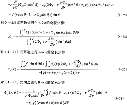 ,t)在rcosθ+b與-rф0sinθ鄰域內(nèi)以ε冪級數(shù)展開式代入(4-4)式,由等號兩端ε的系數(shù)相等得: