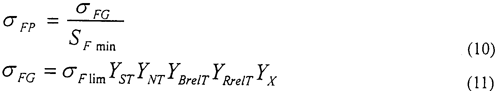 式中:σFG——計(jì)算齒輪的彎曲極限應(yīng)力,N/mm2