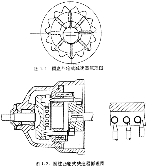圖1.1為圓盤凸輪式,采用滾柱徑向滑槽式結(jié)構(gòu),其目的是為了得到大的減速比及大的傳遞扭矩。顯然這種結(jié)構(gòu)由于滾柱系尖頂易磨損,降低了其承載能力。
