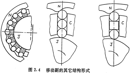 圖2.4所示是推桿與導槽所構成的移動副的另外幾種形式,它們也未能很好地解決移動副所帶來的滑動摩擦問題。