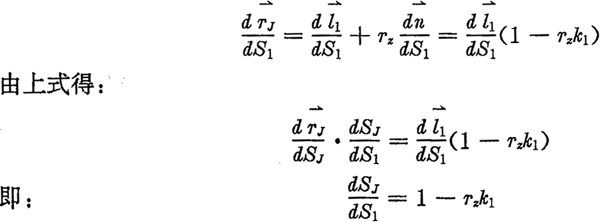 下面再推導一下齒廓及其法向等距線的相對曲率關系。設HJ的孤長參數(shù)為SJ,相對曲率為kJ,而H1的孤長參數(shù)為S1,相對曲率為k1,由微分幾何可得:
