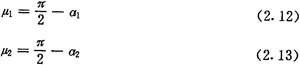 同樣,由微分幾何,曲線H2的向徑與切線正方向的夾角μ2可由下式計算: