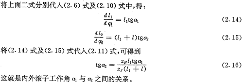 設在某一時刻,激波器與內滾子相切接觸在M1點,內齒圈齒廓與外滾子相切接觸在M2點,如圖2.5所示,則圖中a1與a2分別叫做內外滾子工作角。在工作行程,al及a2都為正值,在非工作行程,它們都為負值。