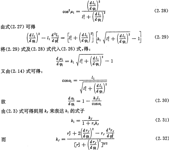式(2.36)、(2.37)、(2.38)是偏心圓激波器的推桿減速器中l(wèi)1、a2與φ2的基本關(guān)系式,后面常用到它們。