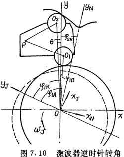 在圖7.2(b)中,若把激波器短軸(yJ)與矢徑OO1的夾角記作φ1A(即φ1A=∠yJOO1)把固定坐標(biāo)系y軸與矢徑OO1的夾角記作φ1B(即φ1B=∠yOO1),則