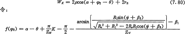 用選代法解方程(7.79),可得到齒廓AB上與跨槽數(shù)為K的齒廓A′B′具有公法線的點P所對應(yīng)的外滾子位置角φ2,從而可行公法線長度WK為: