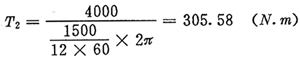 由驅(qū)動(dòng)功率及輸入轉(zhuǎn)速,可近似(忽略摩擦損失)求得輸出扭矩T2為: