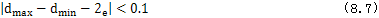 上式中的xN,yN是由式(7.9)表示的齒廓上的點(diǎn)的坐標(biāo)值,當(dāng)φ1=0時(shí),點(diǎn)(xN,yN)對(duì)應(yīng)齒頂,這時(shí)d有最小值偏dmin,當(dāng)φ1=φlm時(shí),點(diǎn)(xN,yN)對(duì)應(yīng)齒根,這時(shí)d偏,齒全高等于己的最大與最小值之差。齒全高限制條件可寫為: