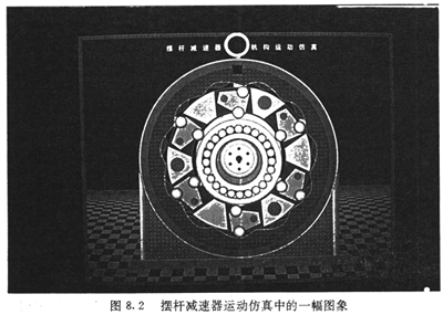根據(jù)上述基本設(shè)計(jì)參數(shù)及各零部件的結(jié)構(gòu)參數(shù),將各主要運(yùn)動(dòng)部件的工作過程在計(jì)算機(jī)屏幕上動(dòng)態(tài)顯示出來。圖8.2是動(dòng)態(tài)仿真過程中的一幀圖象。計(jì)算機(jī)仿真結(jié)果與理論分析完全一致。