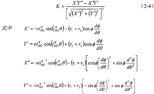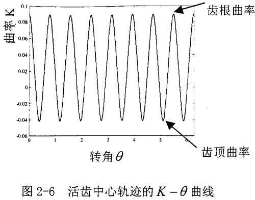 (1)由圖2-6中K-θ曲線可以看出,中心輪每一個齒在齒根處曲率最大,曲率半徑最小。沿著齒廓上升的過程中曲率減小到零后,繼續(xù)減小為負值。到達齒頂時,曲率最小。