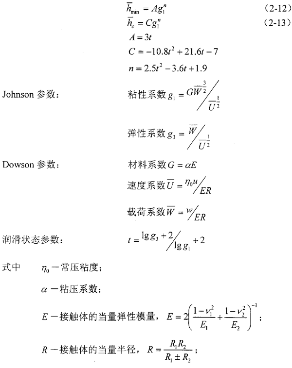 根據(jù)計算流體動力潤滑膜厚的張鵬順統(tǒng)一公式,最小膜厚