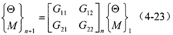 根據(jù)邊界條件,系統(tǒng)自由端狀態(tài)矢量中M=0,固定端Θ=0。代入式(4-23)得