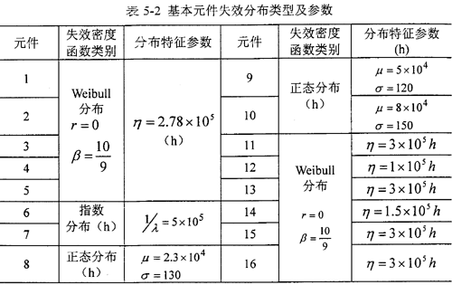 表5-2基本元件失效分布類型及參數(shù)