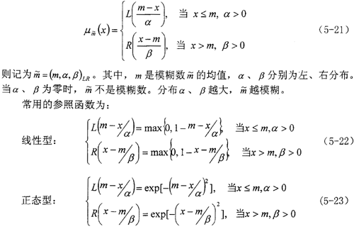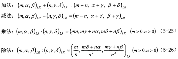 式(5-25)、(5-26)是近似的,嚴(yán)格地說,兩個L-R型模糊數(shù)相乘或相除,其結(jié)果不再是L-R型模糊數(shù)。