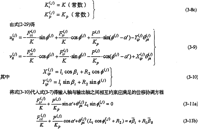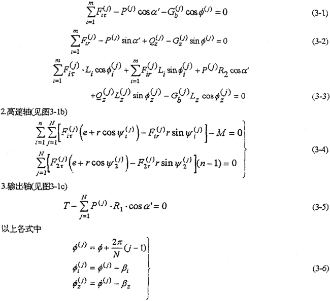(3-11)及式(3-14)就是少齒差內齒行星傳動機的動力分析補充方程。