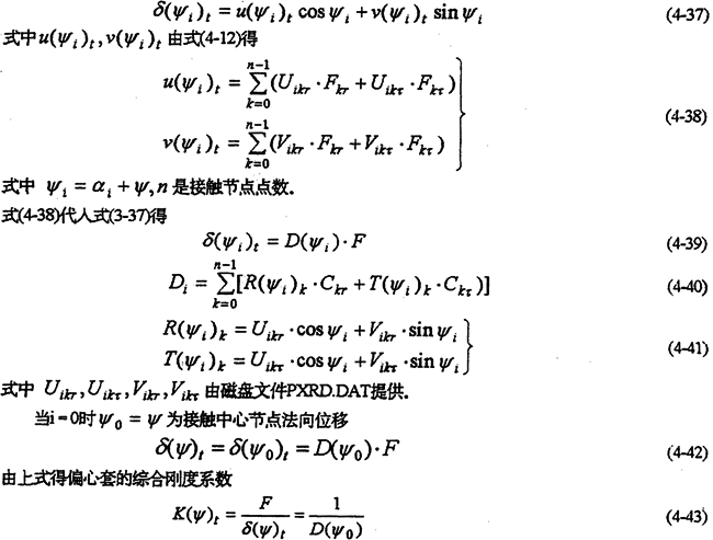 式(4-35)中的F是行星承軸載荷。偏心套外圓周邊某接觸點(diǎn)的法向位移