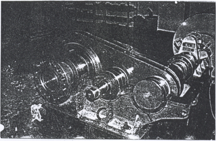 實驗時,通過控制臺操縱,交直流機組1發(fā)出直流電壓設(shè)直流測功機1按恒定轉(zhuǎn)速帶動整個傳動系統(tǒng)運轉(zhuǎn)。SHQ-2及汽車變速箱將被測試件SHQ-1輸出的轉(zhuǎn)速升高后驅(qū)動直流測功機2發(fā)出直流電流,該電流經(jīng)交直流機組2逆變?yōu)楣ゎl交流電返回電網(wǎng),完成整個電功率封閉傳動鏈?刂茀⑼ㄟ^控制交直流機組電壓、電流、改變傳動系統(tǒng)的轉(zhuǎn)速轉(zhuǎn)矩大小。被測信號由加速度傳感器提取,經(jīng)由電荷放大器放大后,進入磁帶記錄儀及CF-355頻譜分析儀進行分析計算。電功率流封齒輪傳動實驗臺如圖6-9所示。