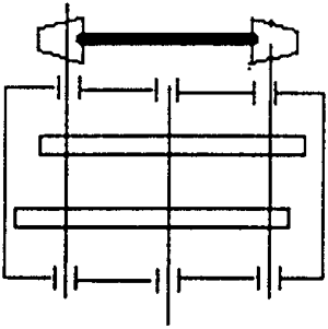 圖2.3是本實(shí)用新型的實(shí)施結(jié)構(gòu)圖之一。下面結(jié)合附圖予以說(shuō)明:箱體由箱蓋和箱座構(gòu)成,兩根高速軸3、15和一根低速軸9的兩端由軸承4、14和11支撐在箱座的軸承孔內(nèi),軸承外側(cè)裝有端蓋和密封圈;同一根高速軸上有兩個(gè)相位差成180°的偏心軸頸,偏心軸頸相當(dāng)于曲柄機(jī)構(gòu),其中環(huán)板起連桿的作用;環(huán)板內(nèi)孔的圓周上均布著針齒銷(xiāo)7,針齒銷(xiāo)外有滾動(dòng)套8;當(dāng)兩塊環(huán)板5、18上針齒銷(xiāo)與固聯(lián)在低速軸上且相應(yīng)相位差成180°的兩個(gè)擺線(xiàn)齒輪12、20嚙合時(shí),體內(nèi)的兩根高速軸固聯(lián)相同的小齒輪119、24,在低速軸上空套一個(gè)過(guò)橋的大齒輪23,兩對(duì)外嚙合驅(qū)動(dòng)雙曲柄順利通過(guò)死點(diǎn)。