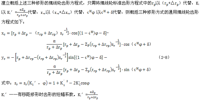 已知rp,rrp,a,Zp=Zp′/2,△rp,△rrp,δ,由式(2-9)算得λ值,再求出φA,xA,yA。那么未修形前齒頂圓的半徑rac即可由下式求得: