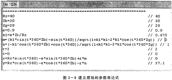 參照上述的擺線輪齒廓形狀曲線表達式,在UG中建立的擺線的參數(shù)表達式見下圖: