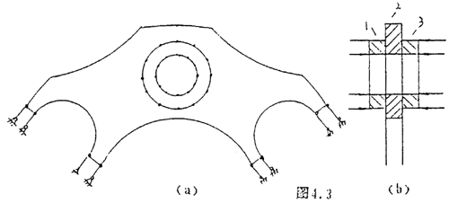 為了分析方便,我們依然取疊片的2/n來分析,當(dāng)聯(lián)軸器傳遞扭矩時,疊片受到主、從動法蘭盤上的聯(lián)接螺栓的作用,其作用的載荷是反對稱載荷。