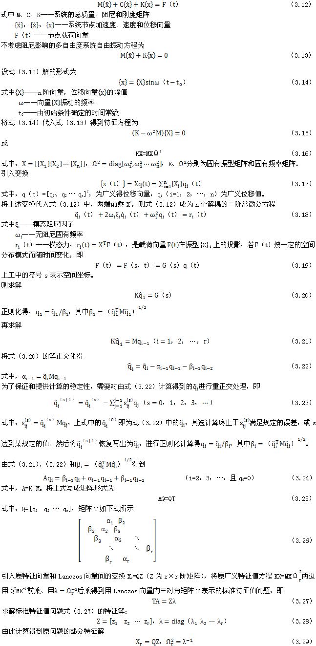 與其它特征值問(wèn)題求解方法一樣,Lanczos算法的主要目的是求解結(jié)構(gòu)系統(tǒng)的動(dòng)力學(xué)方程。
