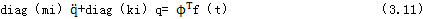 對式(3.22)我們用式(3.10)將其轉(zhuǎn)化到實(shí)模態(tài)坐標(biāo)系里,就可求解Ⅱ子模型振動系統(tǒng)的固有模態(tài)參數(shù)。